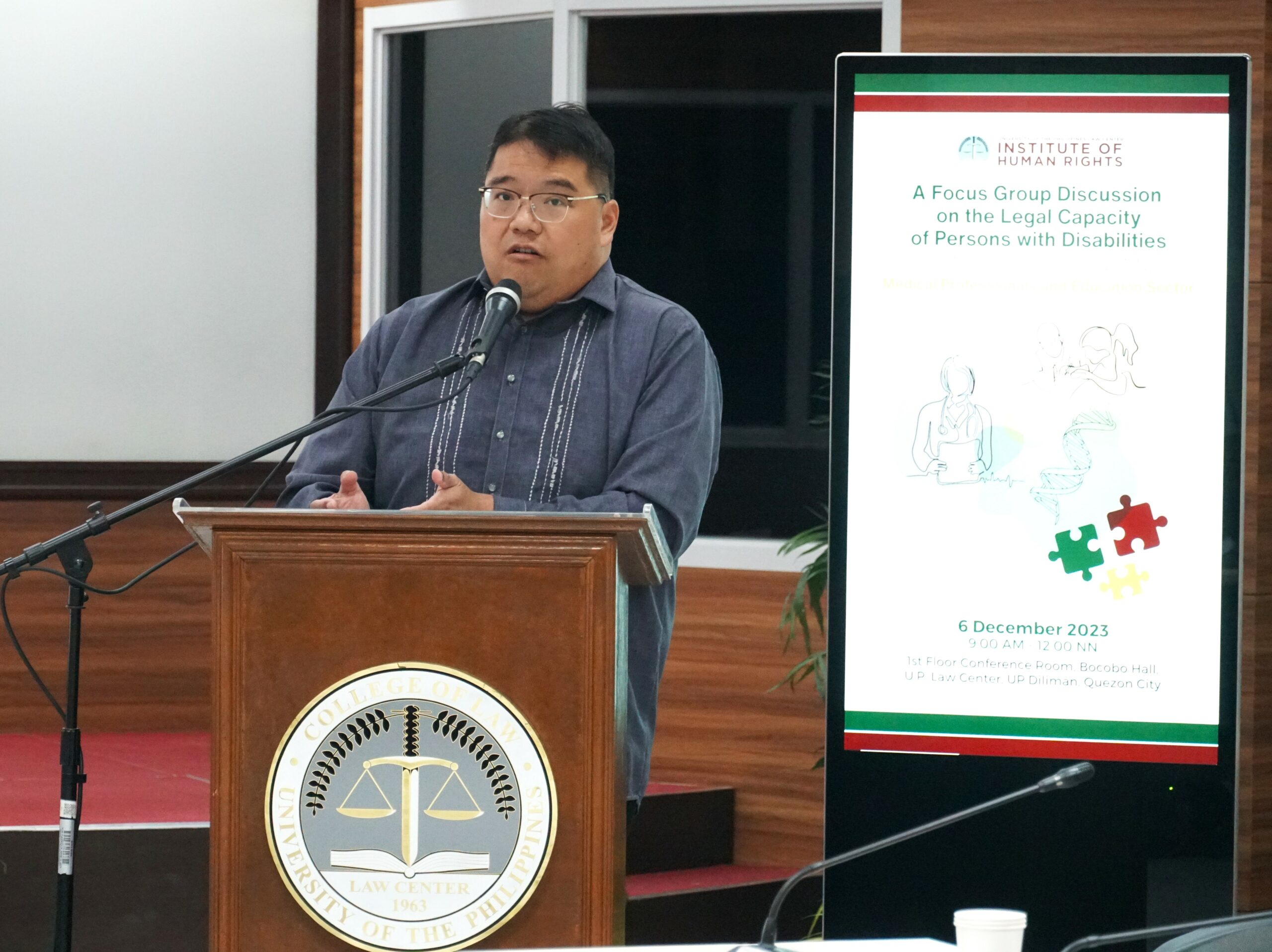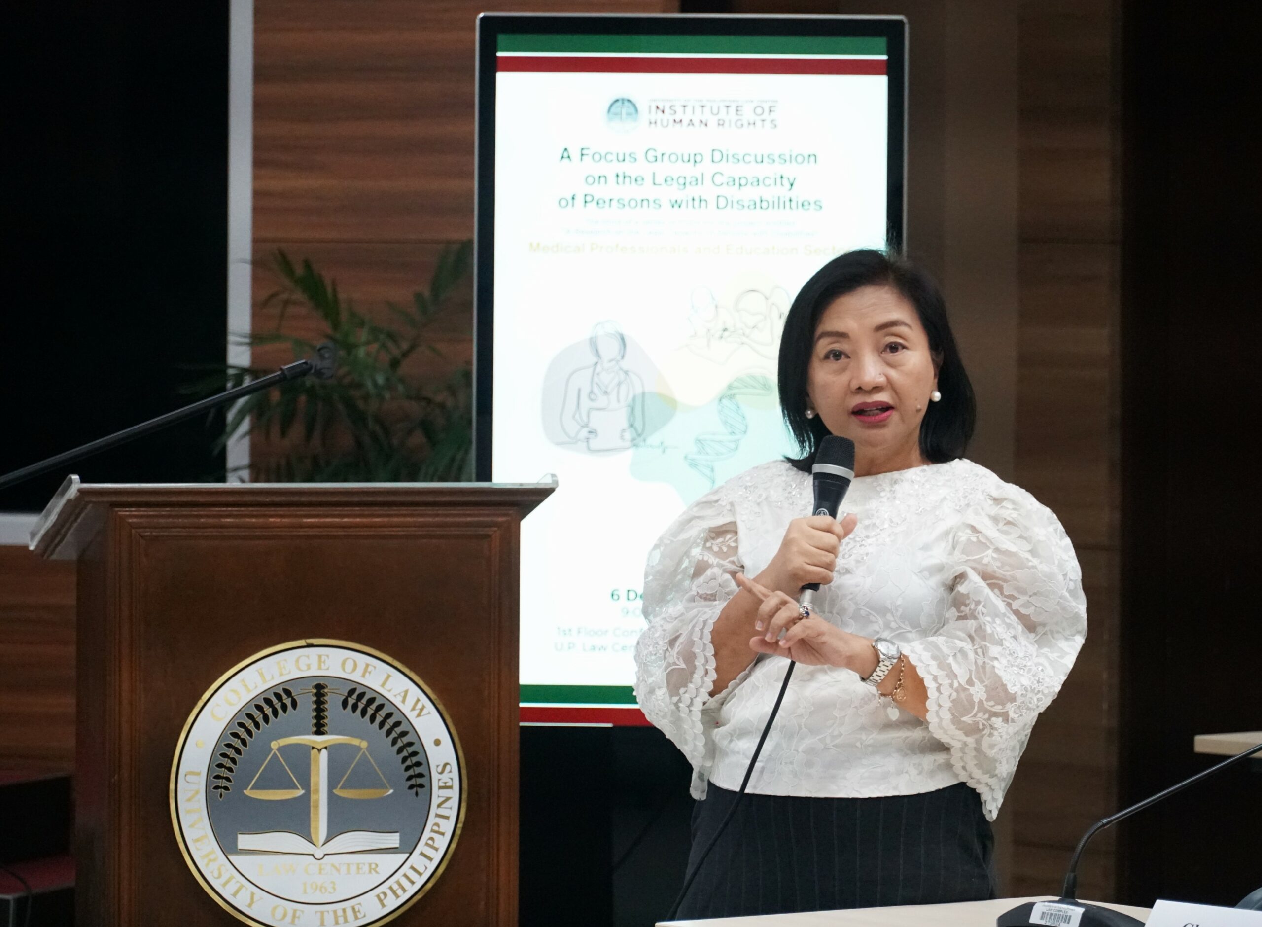 Following two successful Focus Group Discussions (FGD), the UP Law Center Institute of Human Rights (UP IHR) organized the third and last FGD on 6 December 2023 as part of its research project titled “A Research on the Legal Capacity of Persons with Disabilities.” The third session, attended by medical professionals and representatives from the education sector, built on the key insights shared in the previous FGDs. Notably, the medical professionals hailed from the University of the Philippines College of Medicine, Adventist University, and the University of the Philippines Diliman Psychological Services. It was also joined by representatives from the Department of Education (DepEd) and the Technical Education and Skills Development Authority (TESDA).