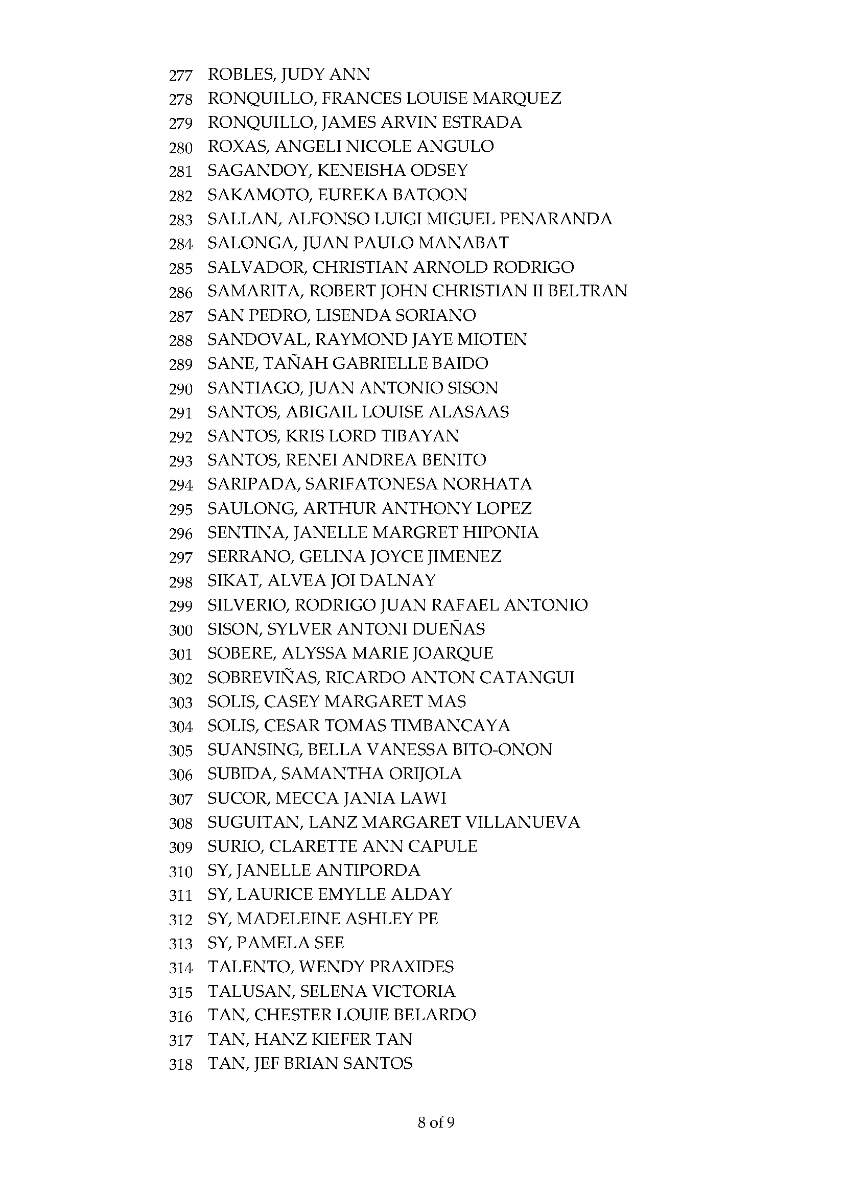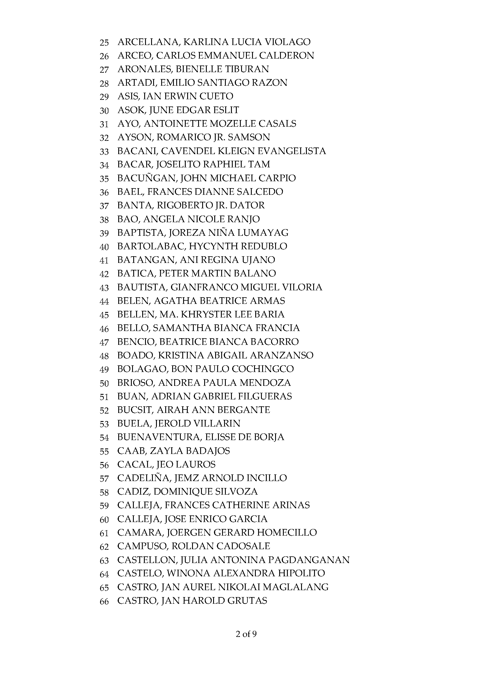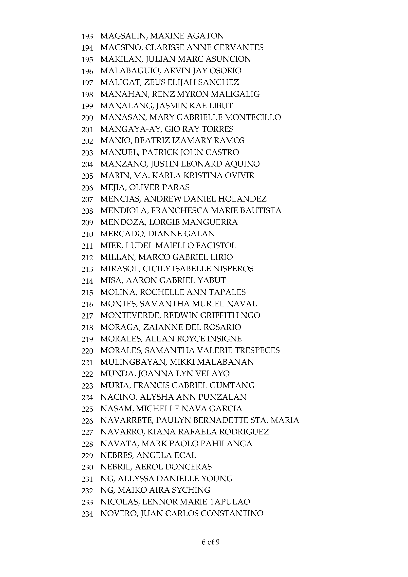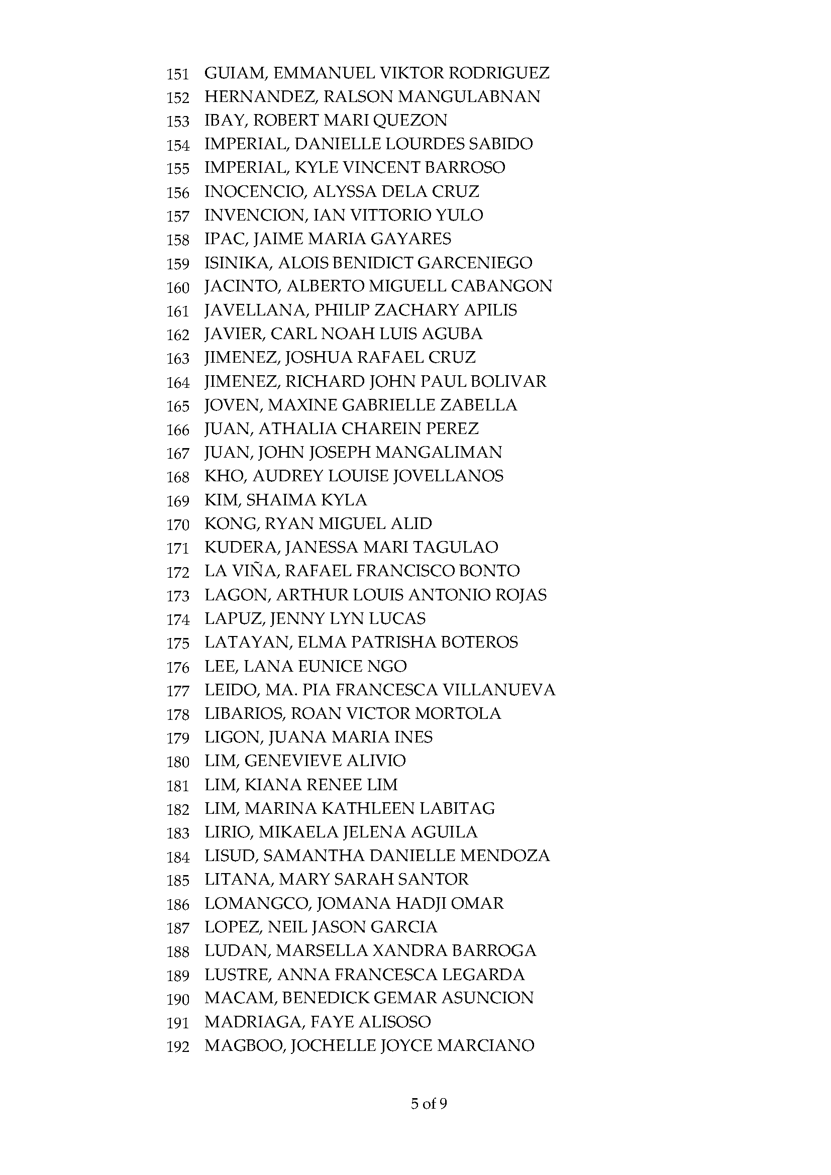 Final List of Applicants Qualified for Admission for Academic Year 2021-2022