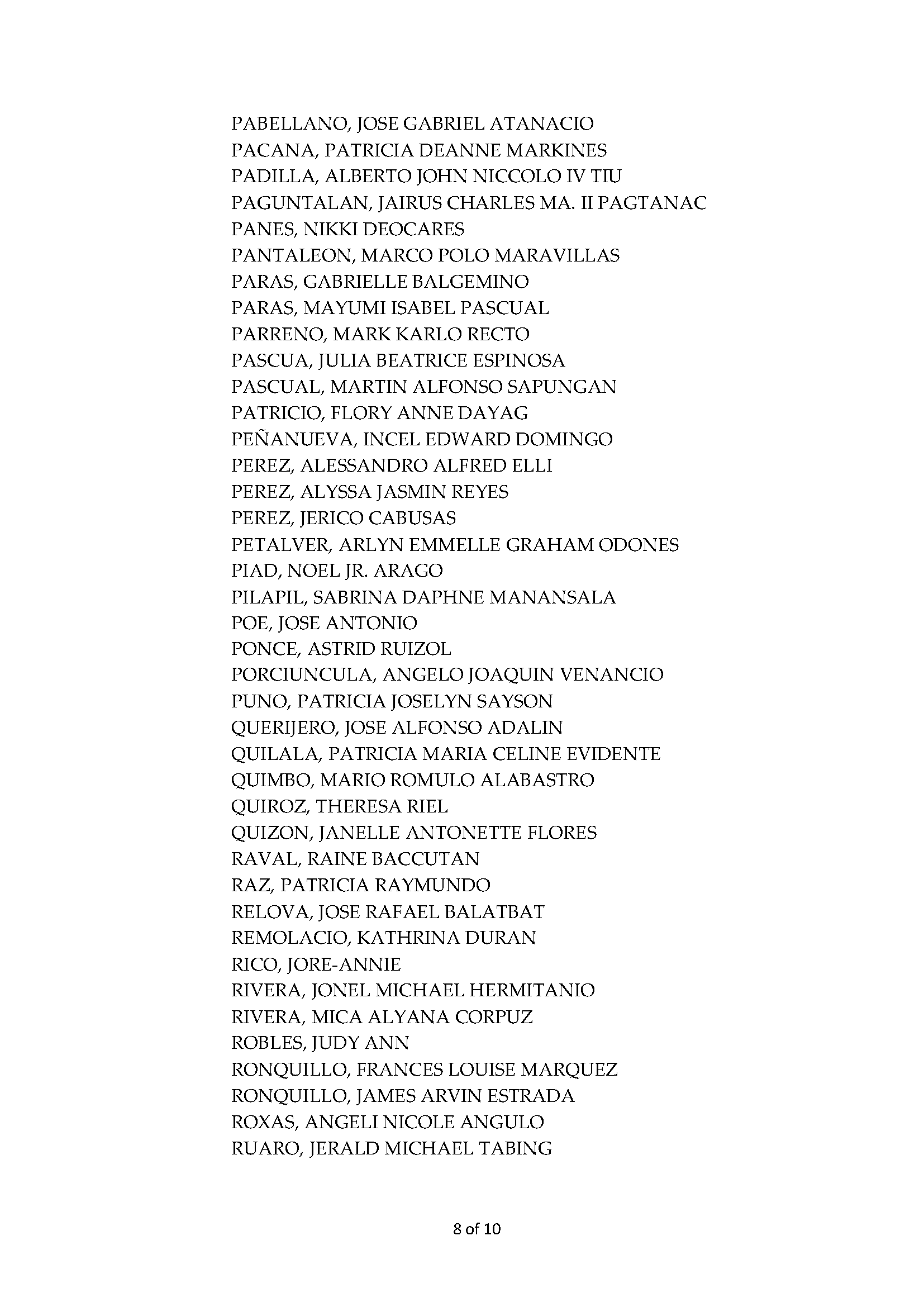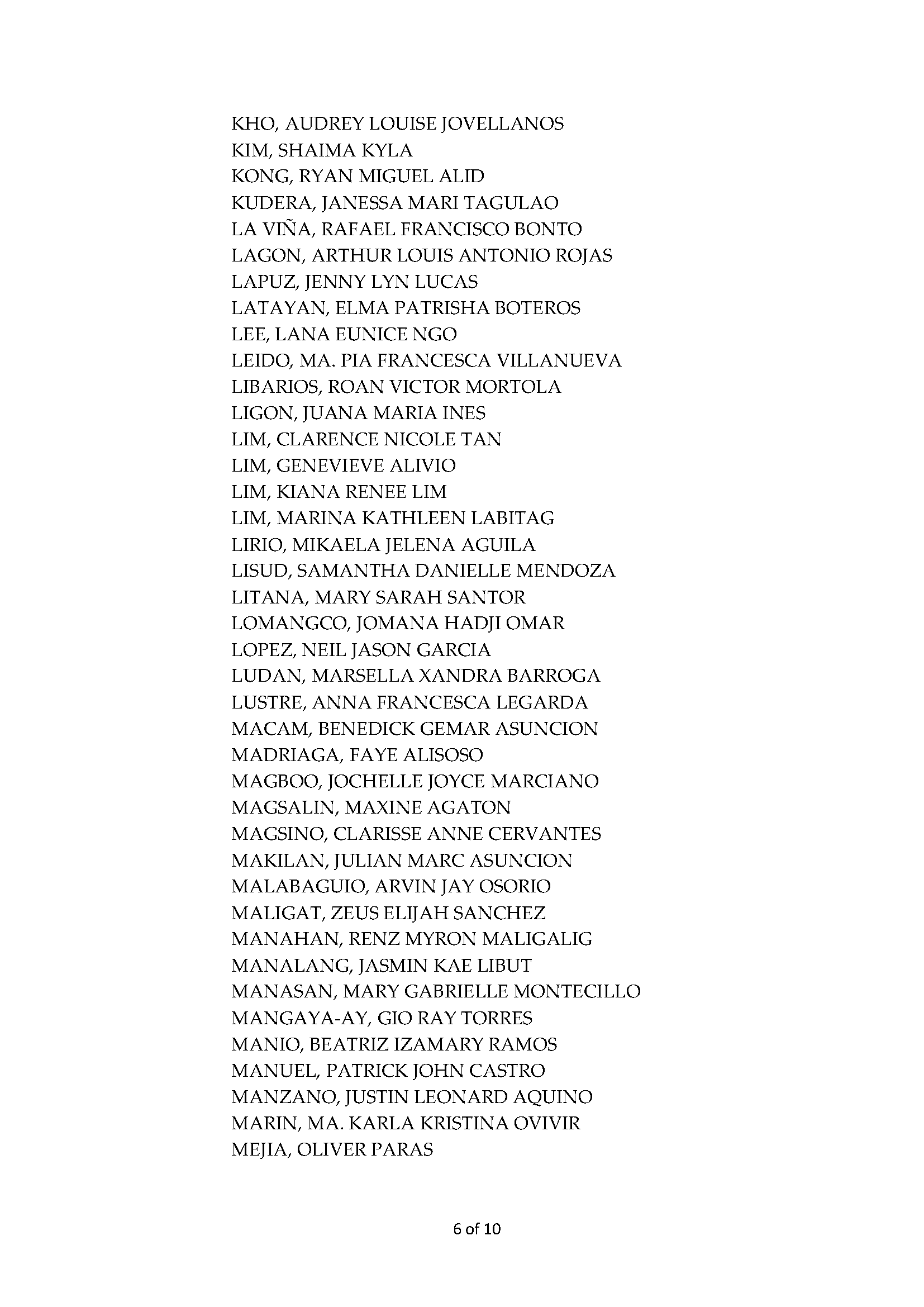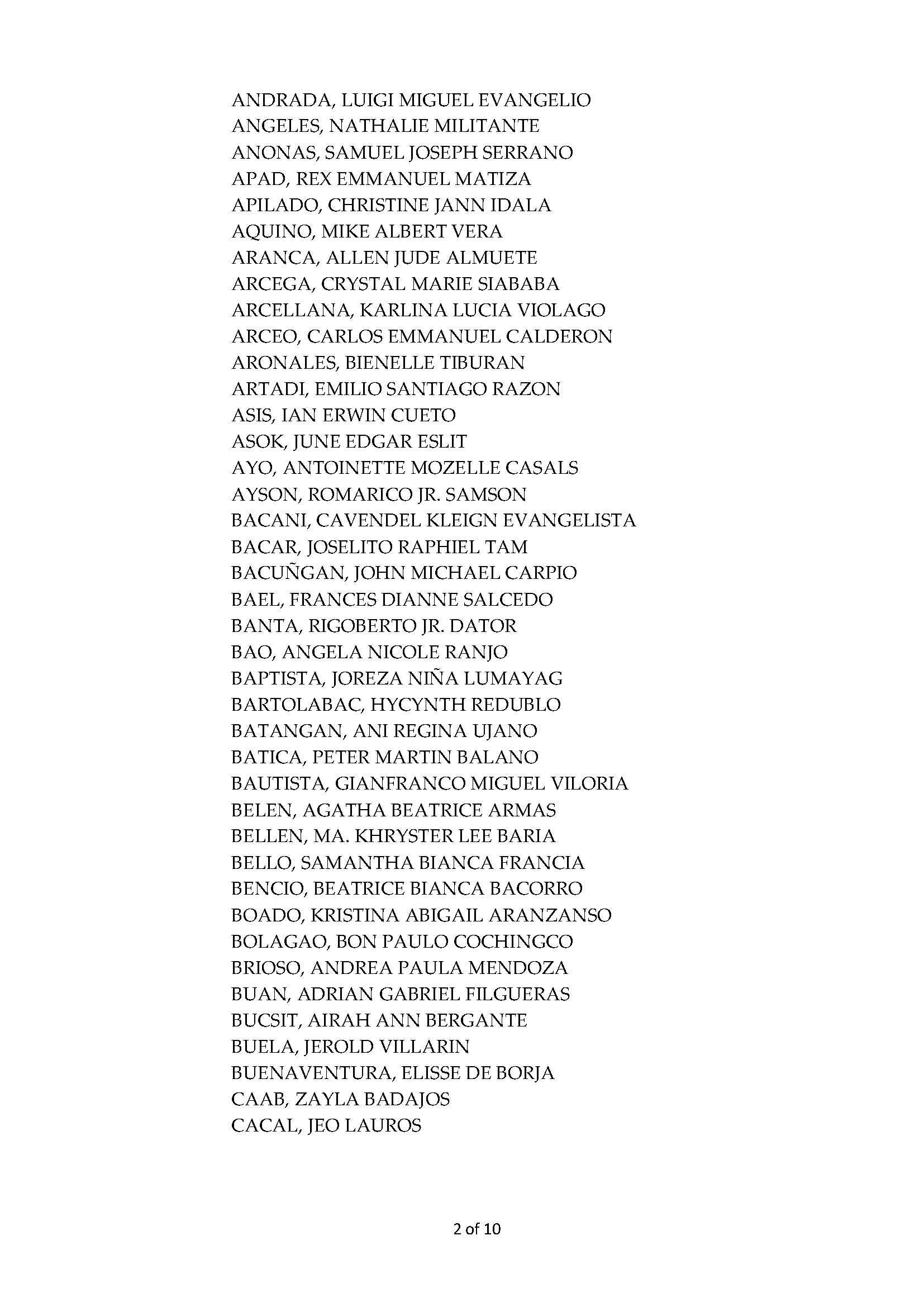 List of First Year Qualifiers For Admission to the UP College of Law JD Program