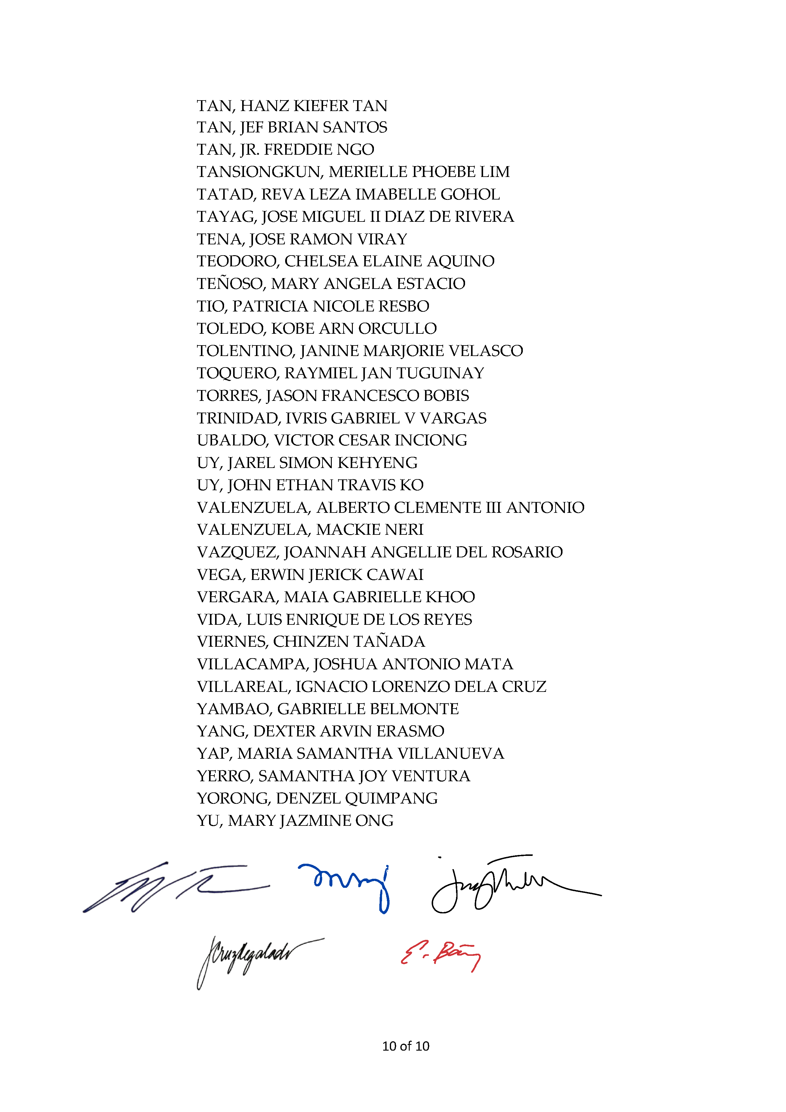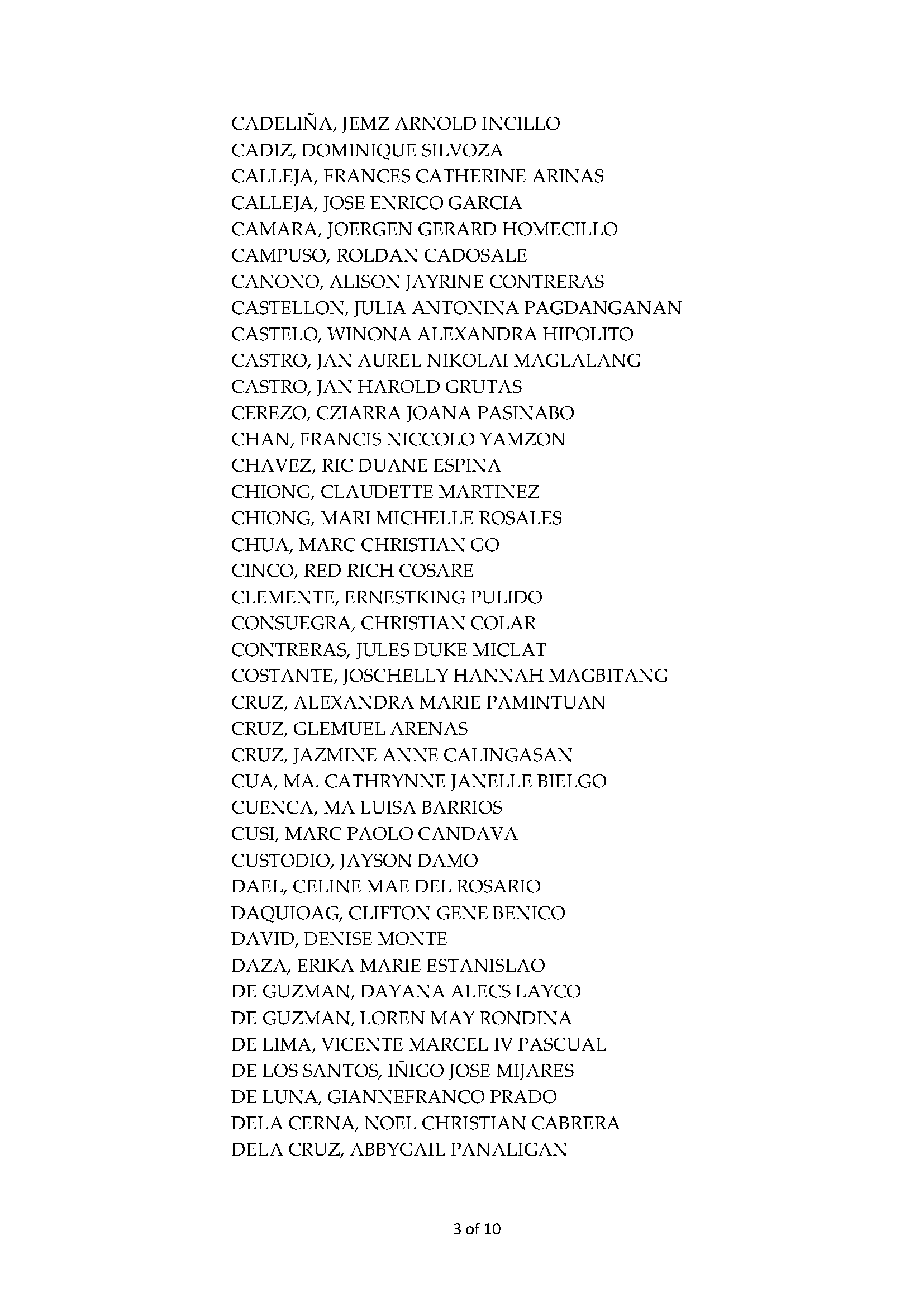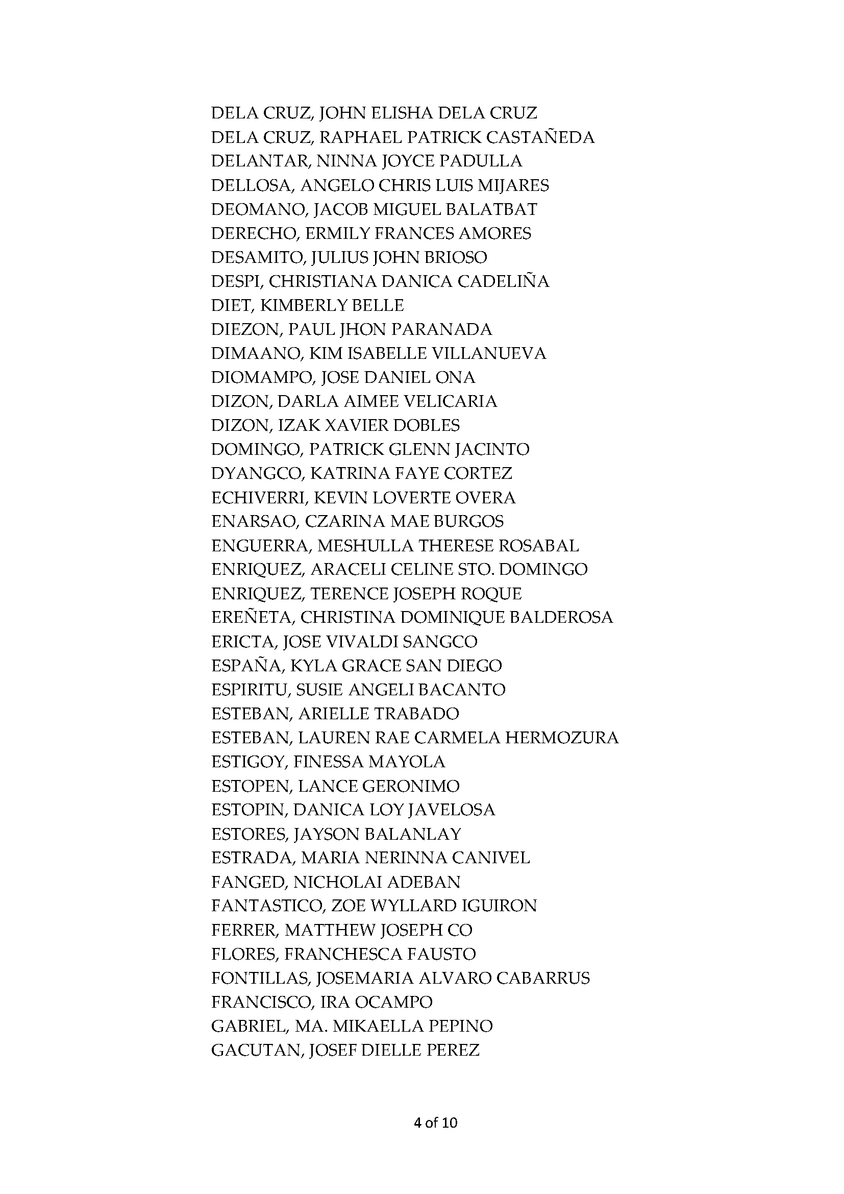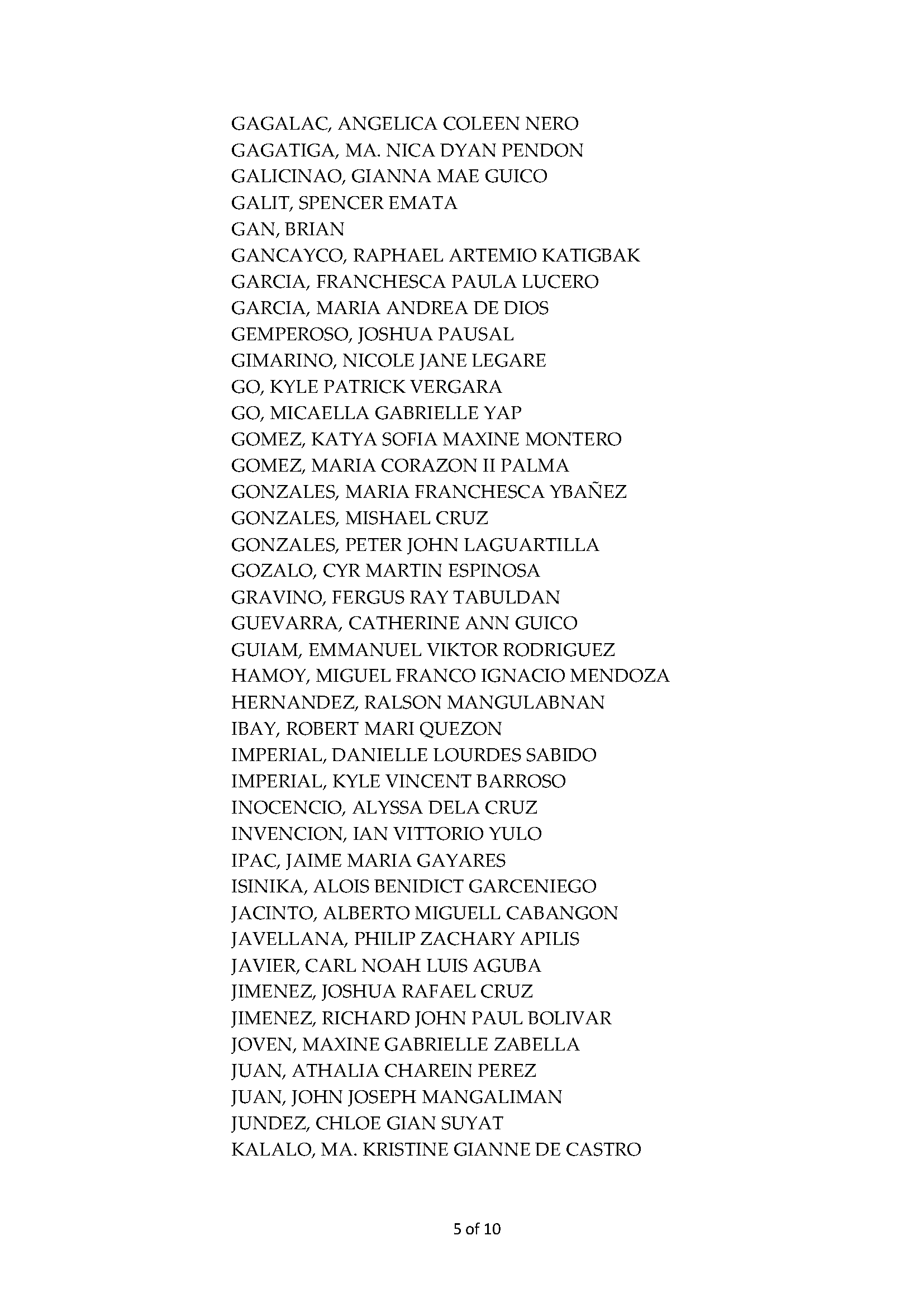 List of First Year Qualifiers For Admission to the UP College of Law JD Program
