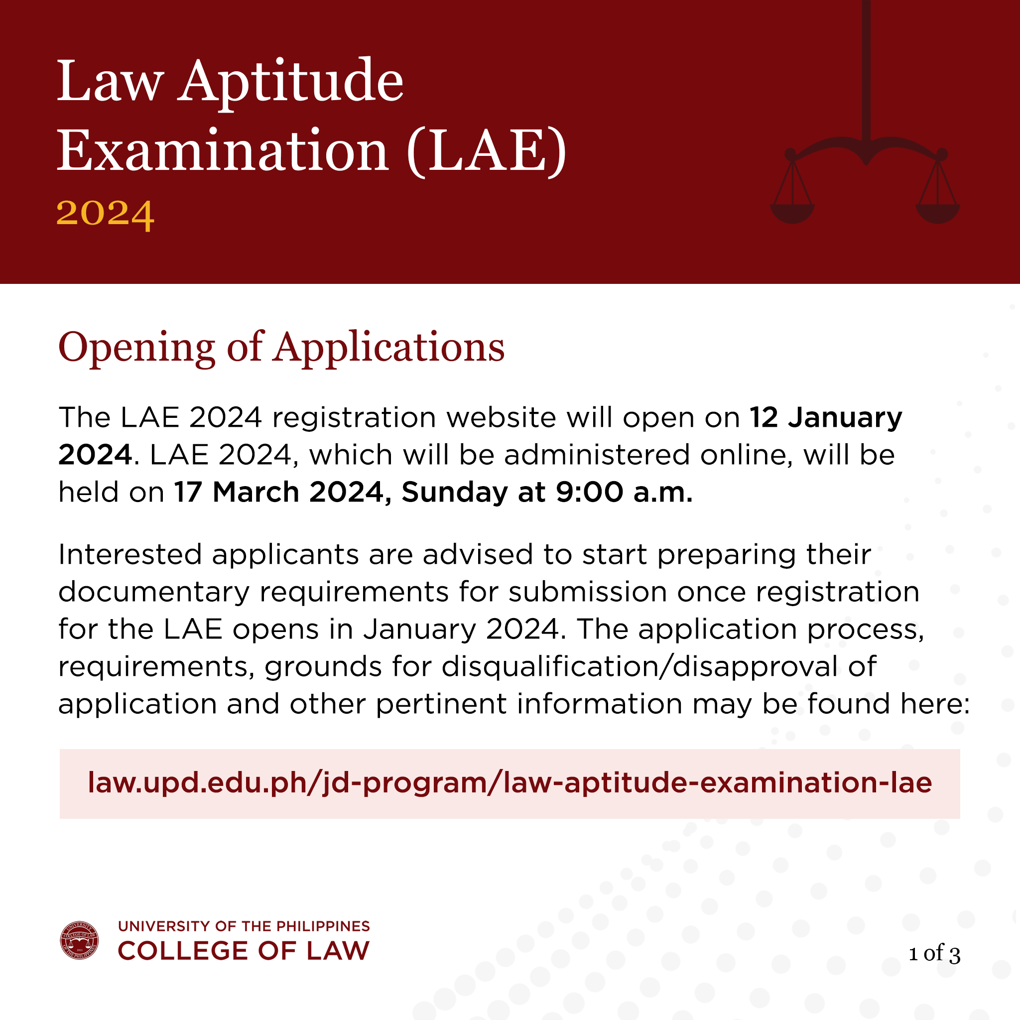 ANNOUNCEMENT RE LAW APTITUDE EXAMINATION (LAE) 2024