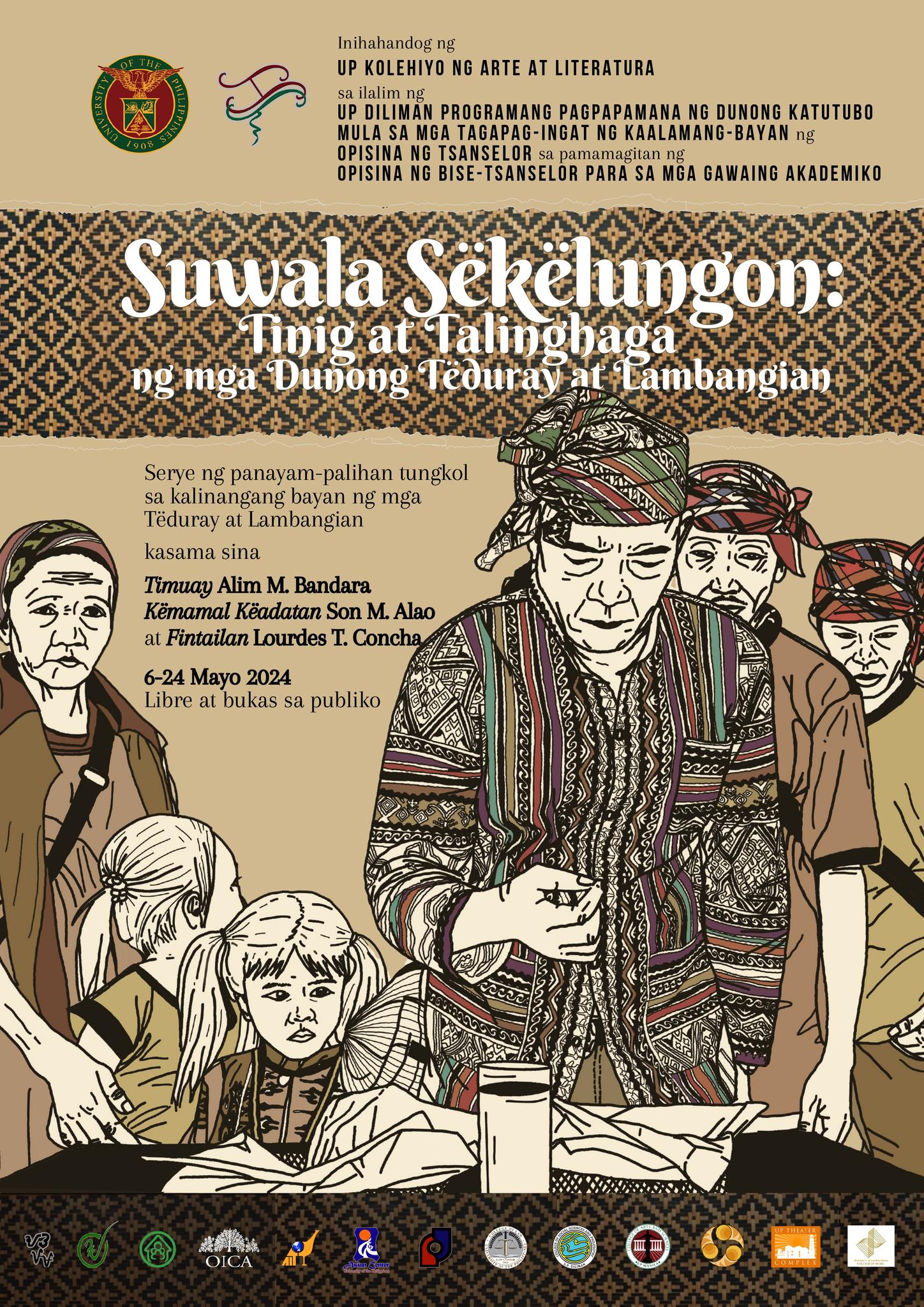 Ang mga aktibidad na ito bahagi ng programang “Suwala Sëkëlungon: Tinig at Talinghaga ng mga Dunong Tëduray at Lambangian” mula sa UP Diliman Culture Bearers-in-Residence Program ng Opisina ng Tsanselor. Ang serye ng Panayam-Talakayan ay susundan ng “Fëgëtaw: Pangwakas na Programa” sa ika-22 ng Mayo, sa ganap na 1:00 hanggang 3:00 ng hapon sa Malcolm Theater, Malcolm Hall, UP College of Law, UP Diliman.