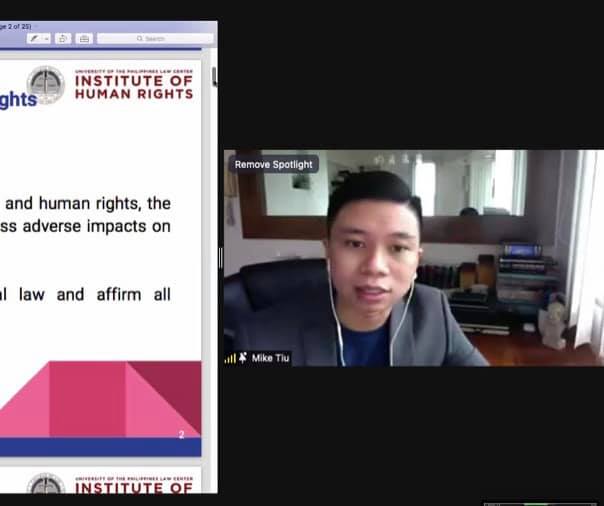 UP Law Assistant Professor Michael Tiu Jr., who also serves as UP IHR’s Consultant on Business and Human Rights, then spoke on the responsibility of enterprises to respect and protect human rights, starting with a policy commitment. In doing so, he discussed the relationship of human rights abuses on businesses, highlighting corporate responsibility to respect human rights.