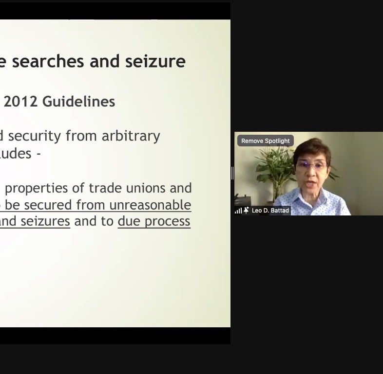 UP IHR Law Reform Specialist Atty. Daniel Lising, who served as the emcee for the first day, introduced the main lecturer Prof. Patricia Salvador Daway. A leading expert on labor law, she discussed the basic principles of freedom of association, as well as its statutory, constitutional, and international law bases. In concluding her presentation, Prof. Daway cited the 2015 decision of Baron v EPE Transport (G.R No. 202645) that recognized labor as an “active and equal partner of capital,” not just its “mere employee.”