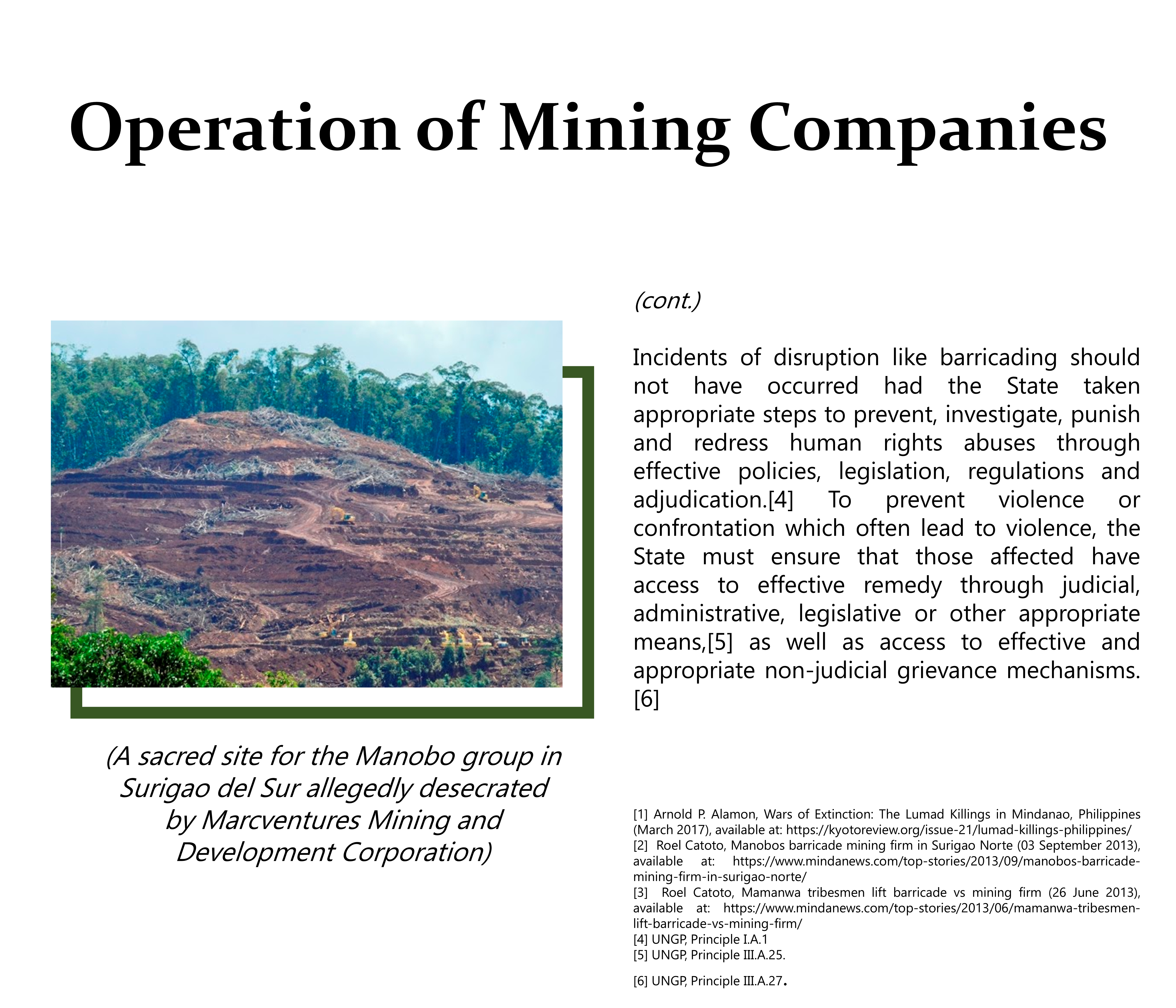 In the album, UP IHR highlights the struggles of various IP groups across the Philippines against invasive corporate activities and public-private partnership projects which threaten a wide range of their individual and collective rights. These activities, which include damming, mining, oil drilling, to name a few, are carried out on or near IPs’ lands often without the Free, Prior and Informed Consent of the indigenous cultural community, further threatening rights and exacerbating IP vulnerabilities. UP IHR also analyzes the acts of these businesses and how they conform with or contravene the United Nations Guiding Principles on Business and Human Rights (UNGP-BHR), which is the global framework used for addressing adverse impacts on human rights linked to corporate activities.